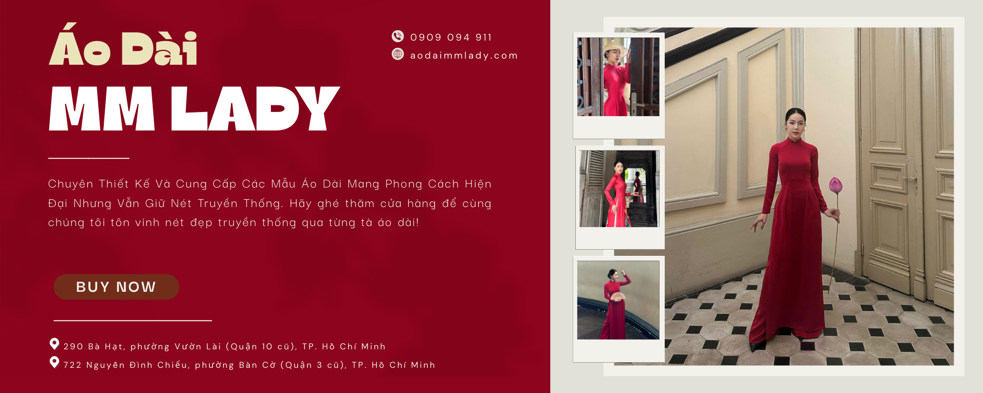 Đặc biệt, MM LADY còn chuyên thiết kế áo dài cưới hỏi sang trọng, áo dài lễ hội với họa tiết tinh xảo, và áo dài biểu diễn nghệ thuật nổi bật. Tất cả sản phẩm đều được may từ những chất liệu cao cấp như lụa, gấm, ren, đảm bảo mang lại sự thoải mái, mềm mại nhưng vẫn giữ được vẻ ngoài đẳng cấp.